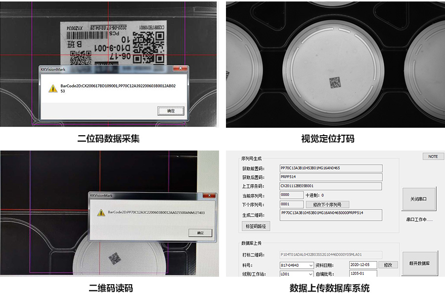 5、數(shù)據(jù)采集及識(shí)別二維碼功能 激光設(shè)備視覺(jué)定位打碼之后可進(jìn)行多個(gè)不同類型條碼自動(dòng)讀碼并上傳數(shù)據(jù)庫(kù)系統(tǒng);